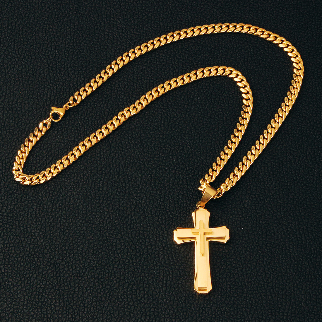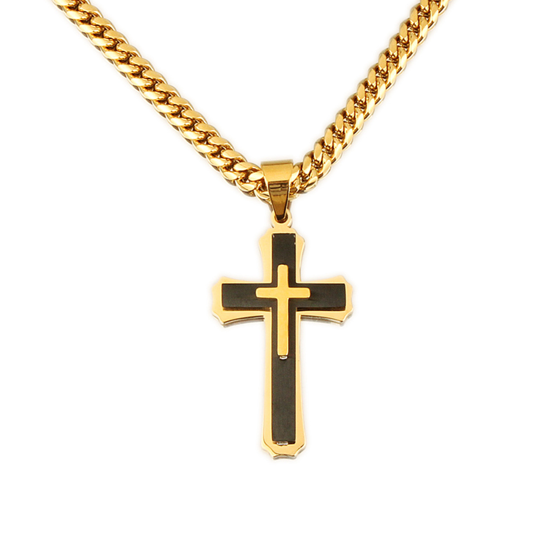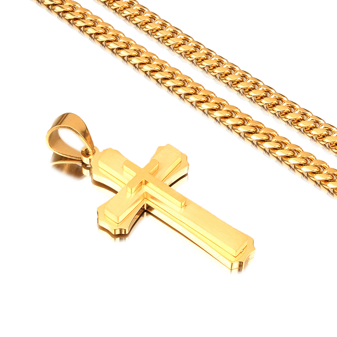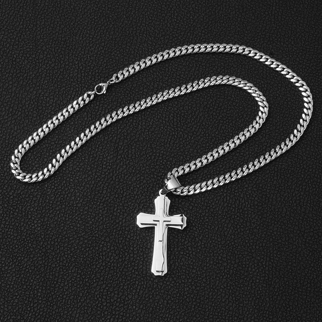 Men's Cross Pendant Titanium Steel Stainless Steel Cuban Link Chain Necklace